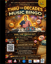 Get ready for a high-energy afternoon of music, memories, and meaningful impact! Join My Life In A Bag Foundation for Thru the Decades: Music Bingo, hosted by the one and only Phil the Trivia Guy.
